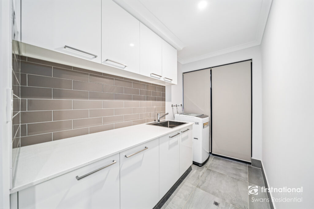 – Laundry has been built in line with display home quality inclusions. It has lots of storage, stone benchtop with a high finish and provides access to backyard.