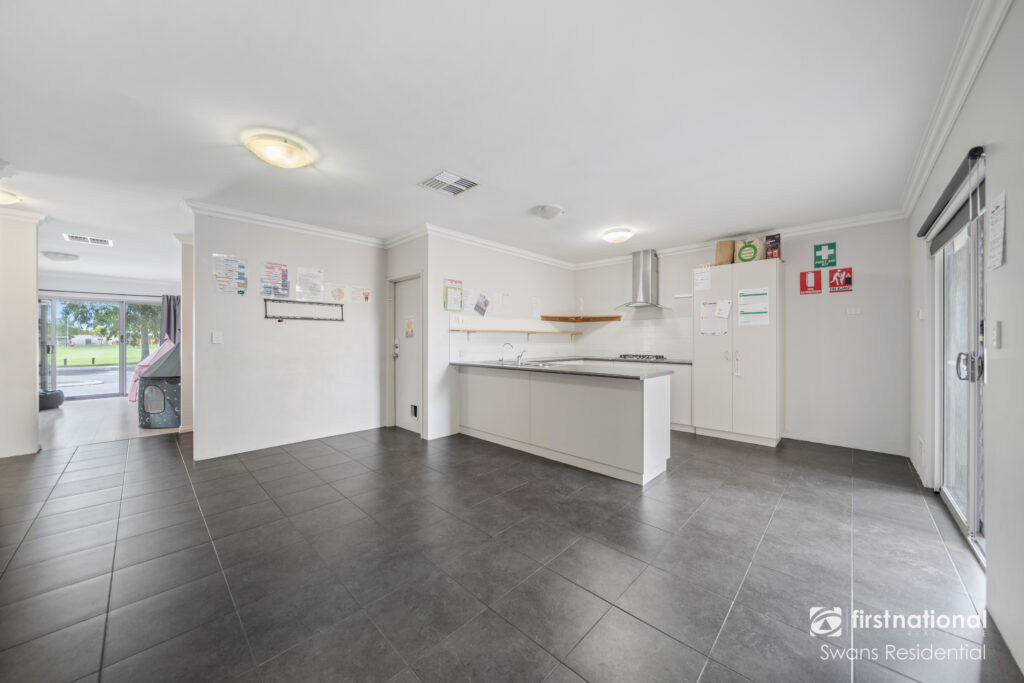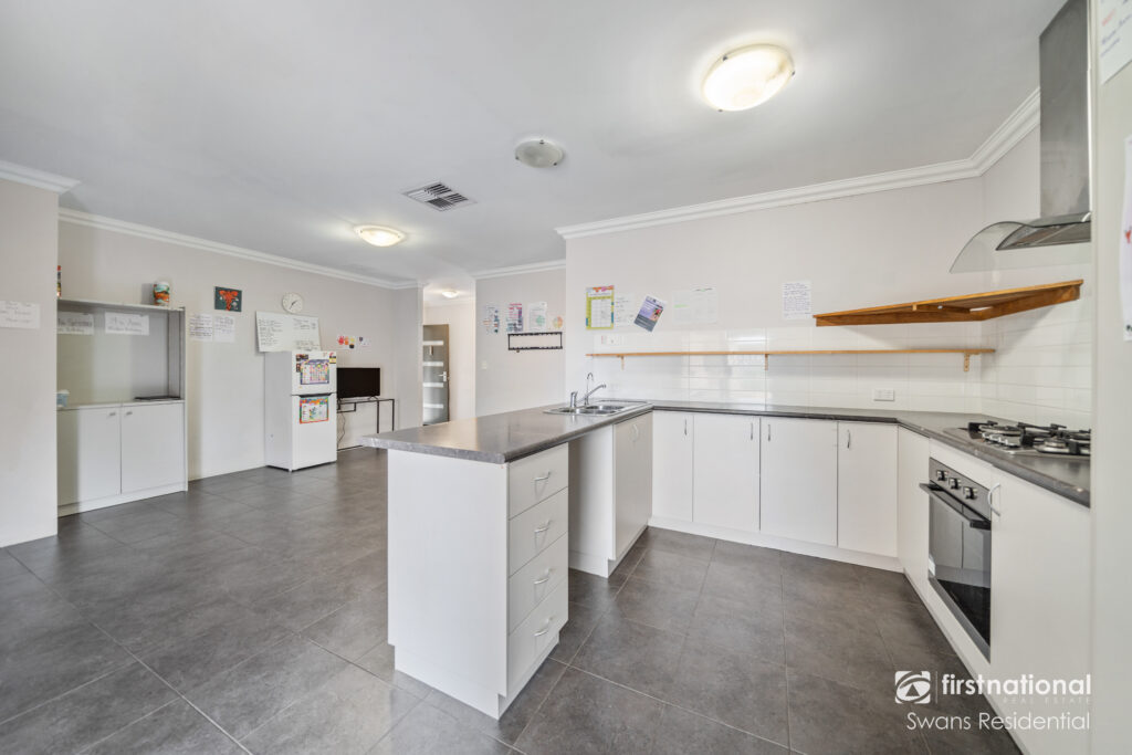 The residence’s kitchen is a welcoming space that features modern stainless-steel appliances, plenty of bench and cupboard space and a breakfast bar. Moving outside, the home has a generously sized paved alfresco which seamlessly integrates the rear of the property and can be transformed to create a beautiful green veggie garden, lush private oasis, or children’s play area.