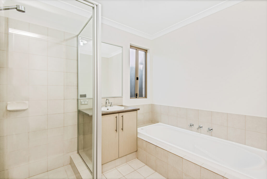 single vanity and bath