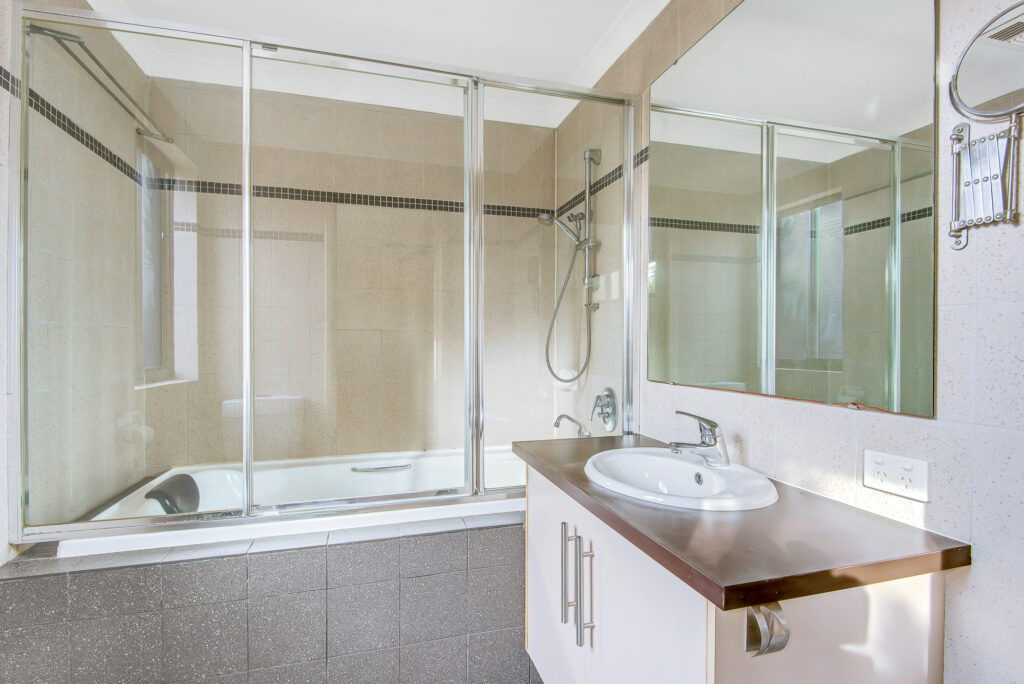 Spa bath shower in the ensuite with floor to ceiling tiles
