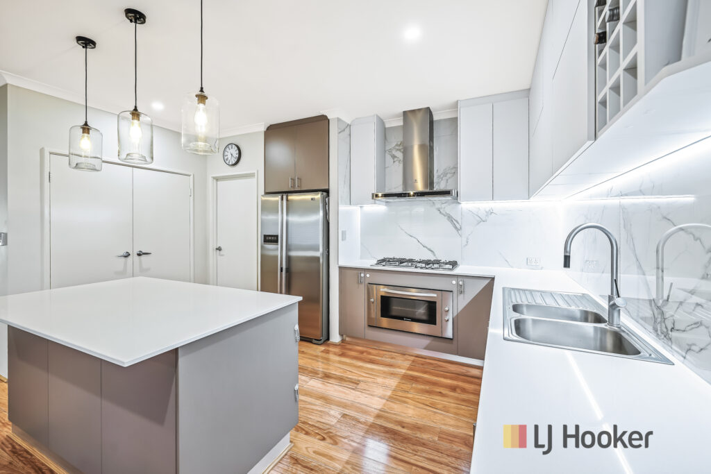 – Custom overhead cupboards with under cupboard LED lighting