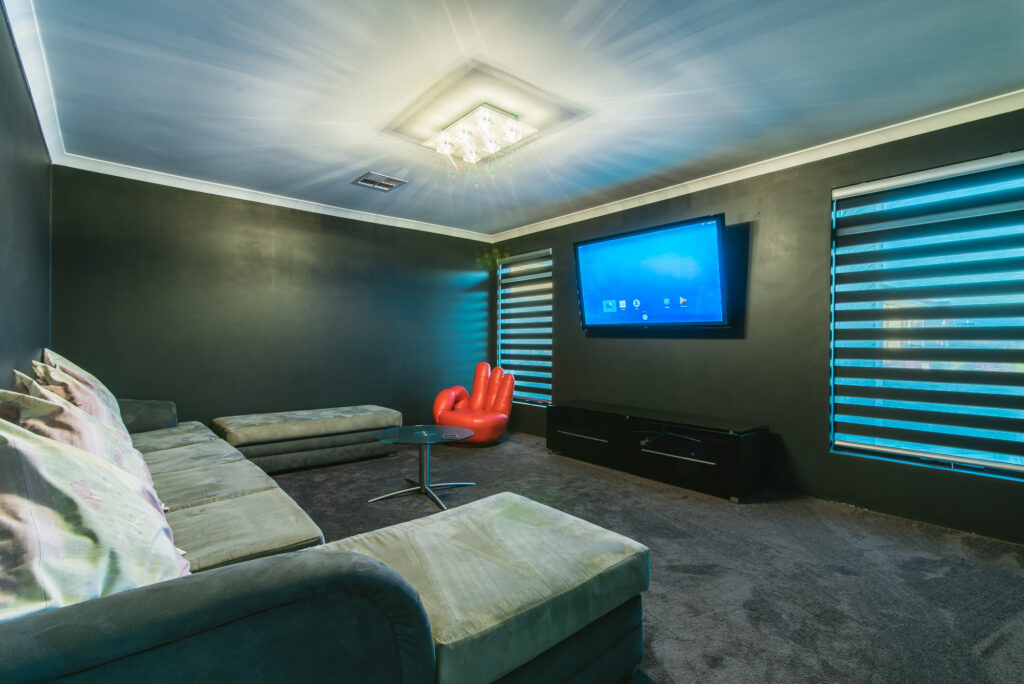 – Stunning Home Theatre with striking blinds