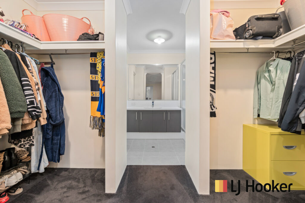 • The master bedroom is massive and shows off his and her walk-in robe with a beautiful sink vanity and also a lovely en-suite with a separate toilet.