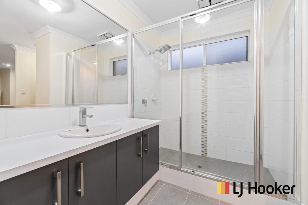 • Bathroom with single vanity and shower for the minor bedrooms at the rear of the home.