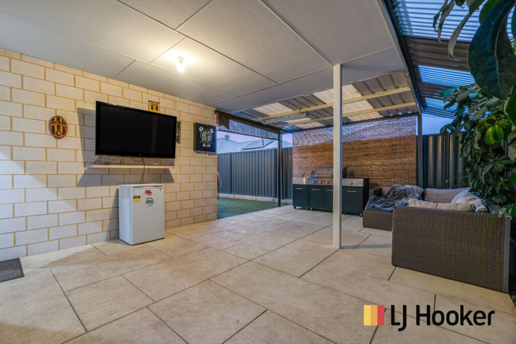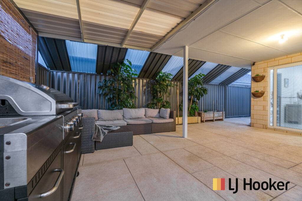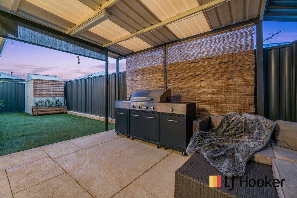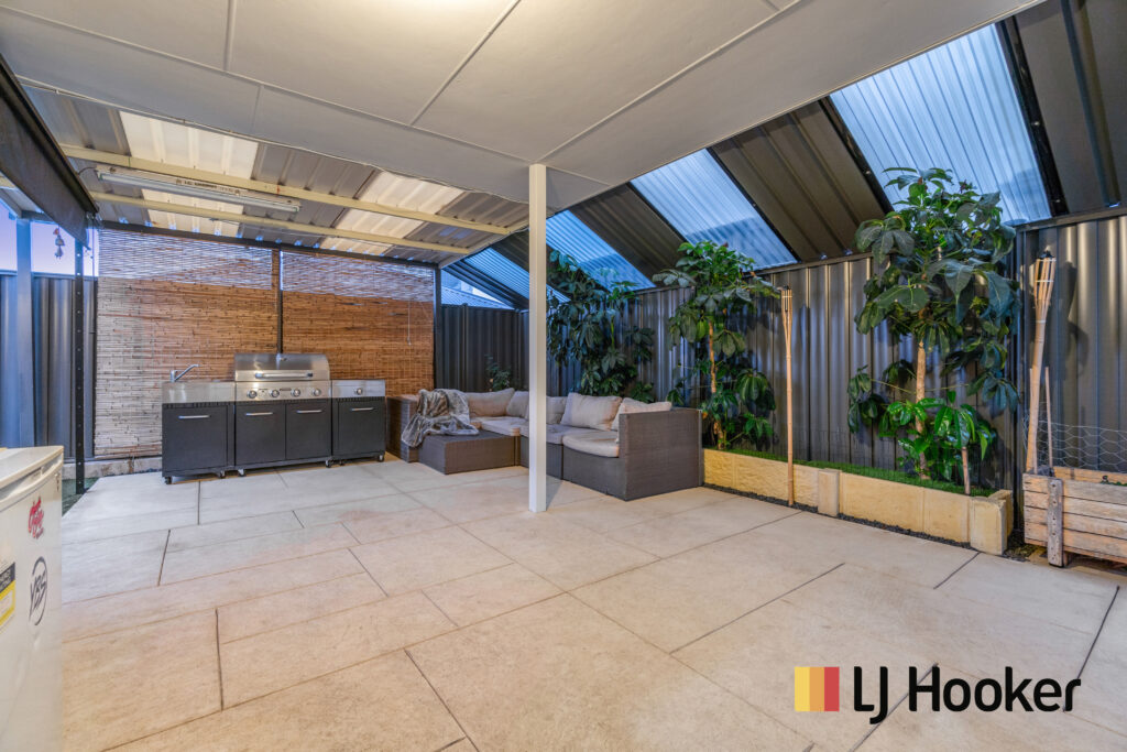 It boasts 4 bedrooms plus a theatre room, a massive living area, 2 bathrooms, laundry with heaps of covered storage space and a 2-car garage. In addition to this, 2 cars can be parked on the driveway and will still have room left. At the same time, it has a fully covered and low maintenance paved backyard with all necessary power points for installing a TV and a barbeque and lot of space to have a prefect outdoor living entertainment with a comfortable sitting area, without worrying about the rain. Backyard and dual side access to the house is fully tiled, making it very low maintenance and giving a lot of space for the pets or kids to play.