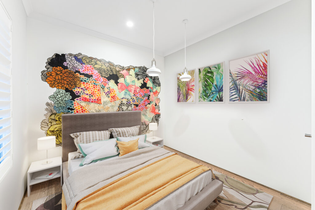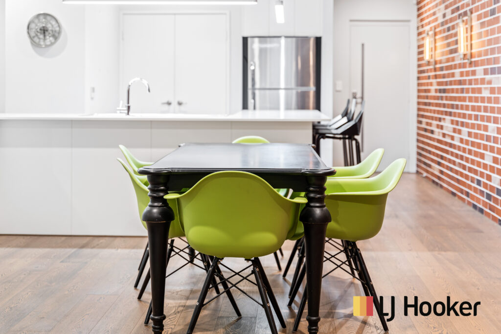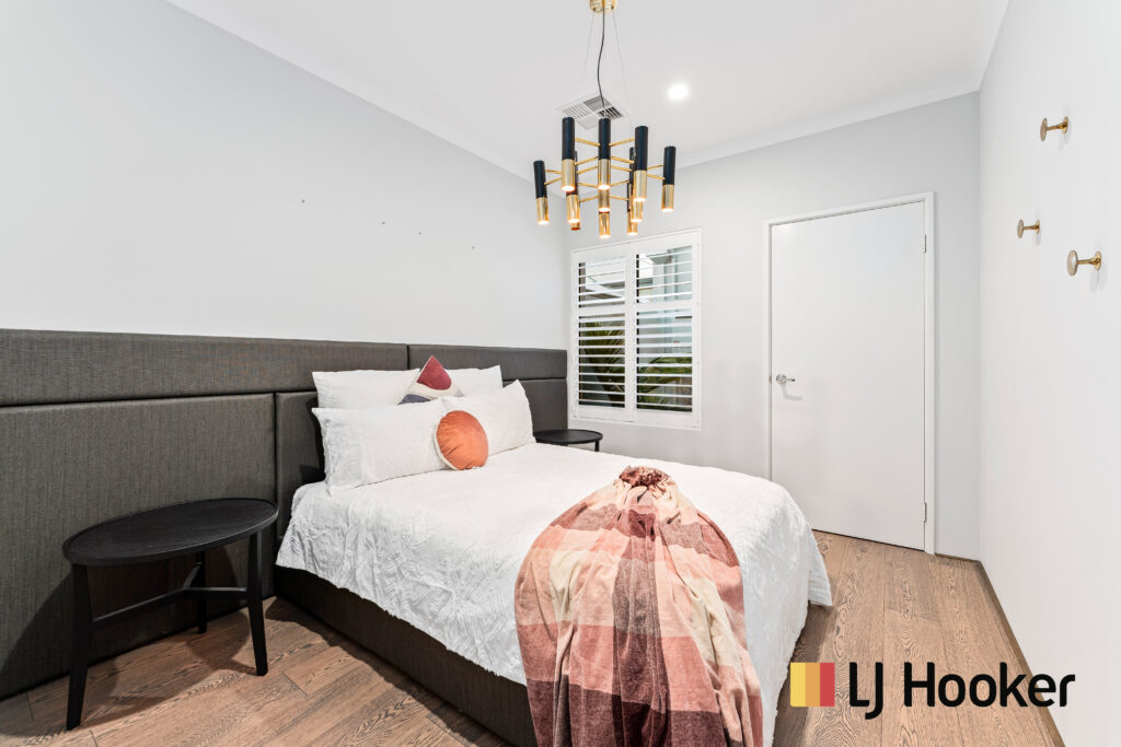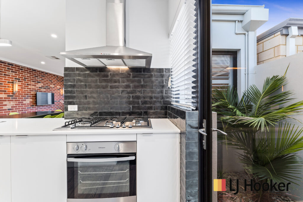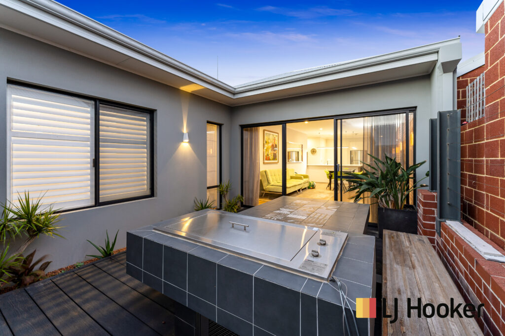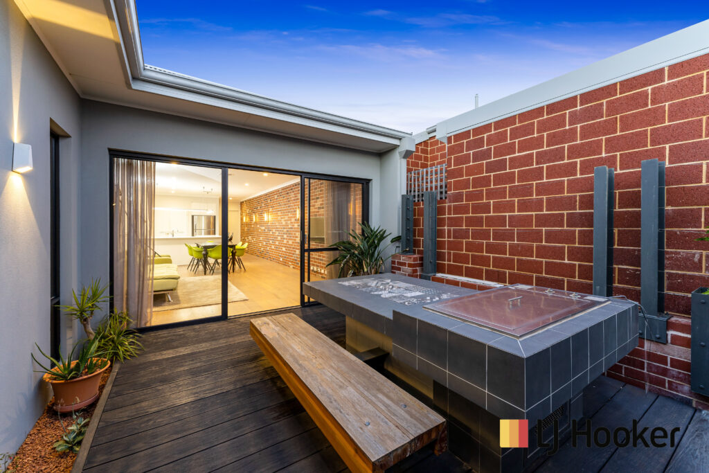 Huge master bedroom has an ensuite and built in robe, other two bedrooms are also completed with built in robes and feature Plantation shutters. These two bedrooms share an sumptuous bathroom. This home not only has an abundance of space, but is finished with the highest quality throughout. Bathed in natural light, the home’s opulent interior is finished to the highest standard. Exposed brickwork, scorched oak wood flooring, modern lighting and 31 course high ceiling create a contemporary modern feel that flows through the kitchen, dining and living area and extends out to a private outdoor area with Teppanyaki BBQ, Table and seating which is perfect for dining with family and friends in the afternoon sun.