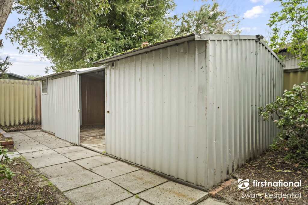 Step outside to a generous backyard, perfect for children and outdoor gatherings. The beautifully landscaped garden, complete with mature trees, creates a serene atmosphere, while a large shed provides ample storage for tools and equipment, making garden maintenance effortless.