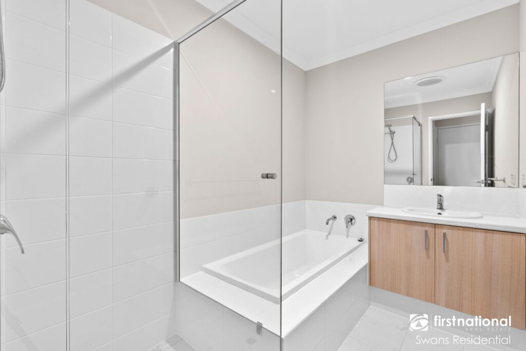 • Main bathroom with shower, vanity and bath