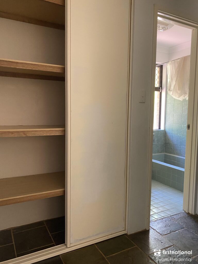 * Laundry and linen cupboard.