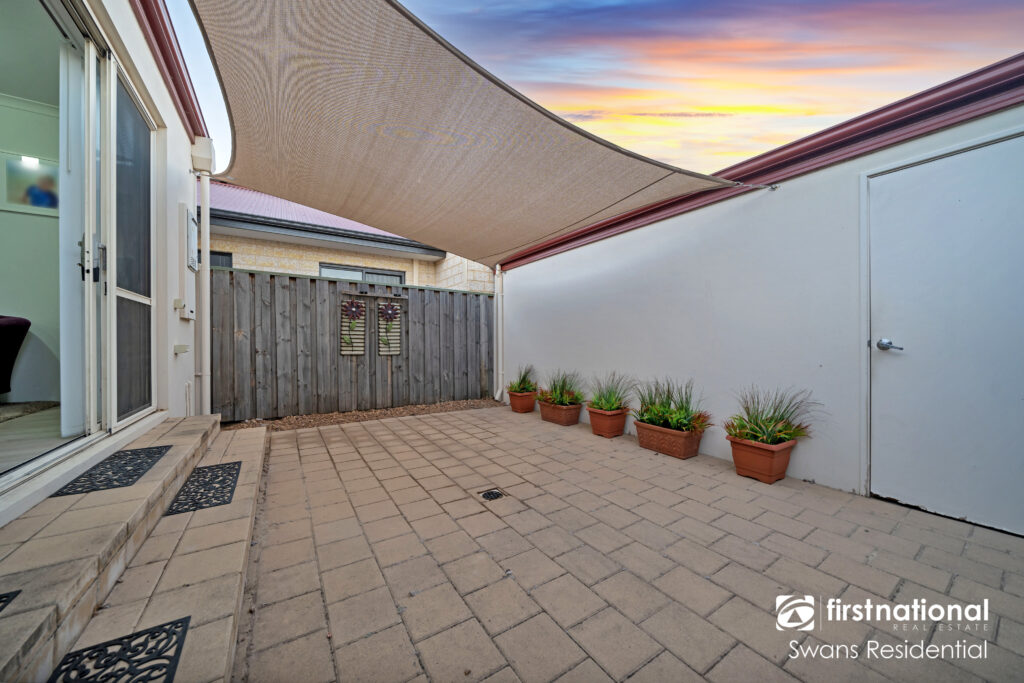 • Paved, shaded courtyard with low-maintenance entertaining space
