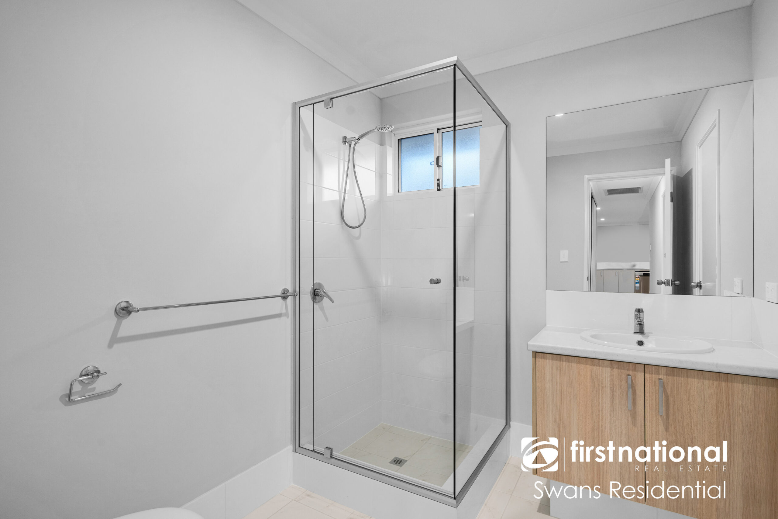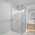 • Main bathroom with shower, vanity and toilet