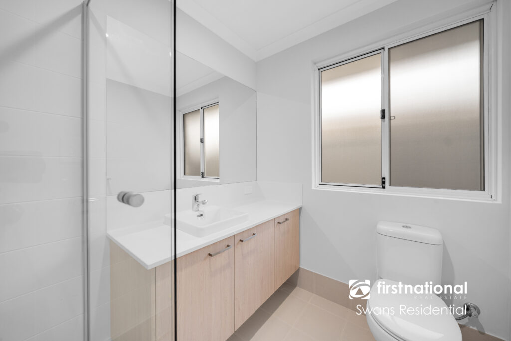 • Main bathroom with shower, vanity and toilet