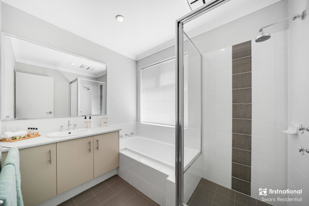 • Main bathroom with vanity, bath and shower