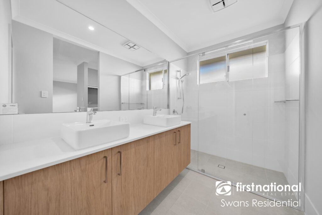 • Master bedroom with his/her walk-in wardrobe and ensuite with double vanity, stone benchtop, and decent shower